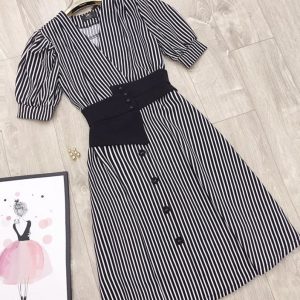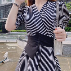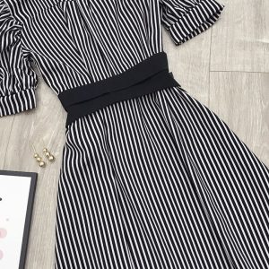 Black and white striped dresses with black belt V1460 is created by a leading designer in Vietnam with a youthful, trendy and respectful style.