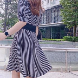 - Uses: Black and white striped dresses with black belt V1460 is suitable for many event: going to weddings, go party, go to work, caffe,…