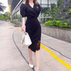 Black bodycon party dresses for women V1489 is made from umi fabric with high quality lace fabric to create a luxurious style to help girls wear to parties, go to work or go out extremely confident and comfortable.