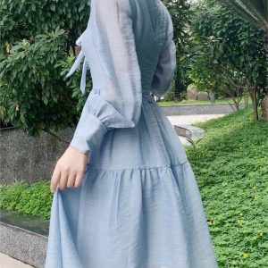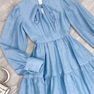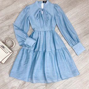 - Uses: Blue dresses for women with bow ties V1628 is suitable for many event spaces, you can wear to parties, go to work, go out,…