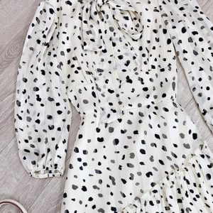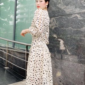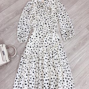 Polka dot women’s dresses bow ties V1643 with exquisite design, extremely elegant and luxurious. The dress is designed and manufactured in Vietnam with a youthful and trendy style.