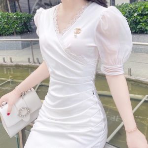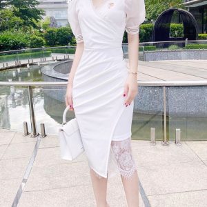 White bodycon dresses V1483 is made from umi fabric with high quality lace fabric to create a luxurious style to help girls wear to parties, go to work or go out extremely confident and comfortable.