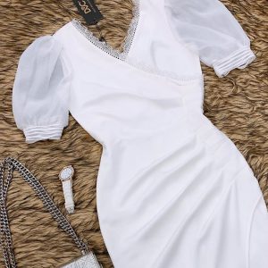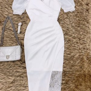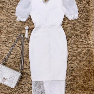 - Uses: White bodycon dresses mix lace fabric V1483 is suitable for many event: go to work, party, walking,…
